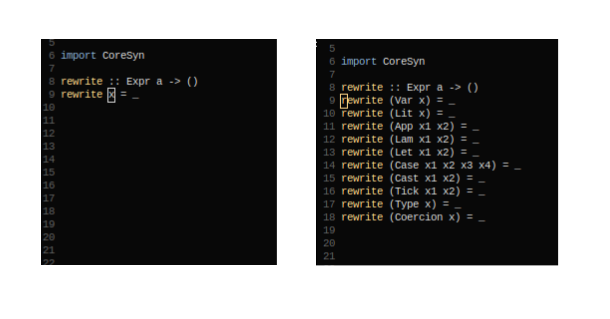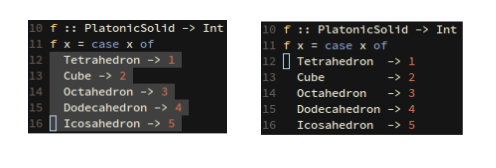 Now to use ghc-mod's case expand feature we simply highlight the scrutinized