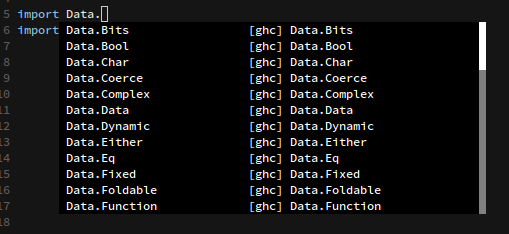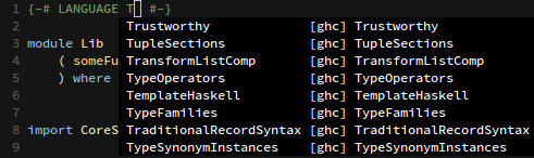 So now pressing tab while in a LANGUAGE pragma, import statement, or anywhere in